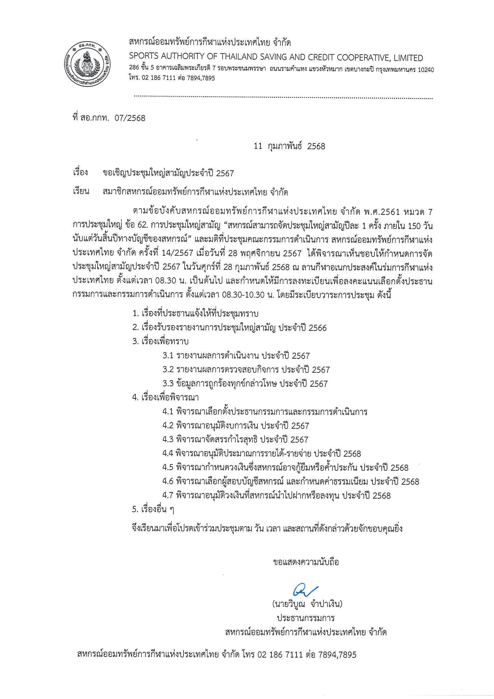 ขอเชิญประชุมใหญ่สามัญประจำปี 2567